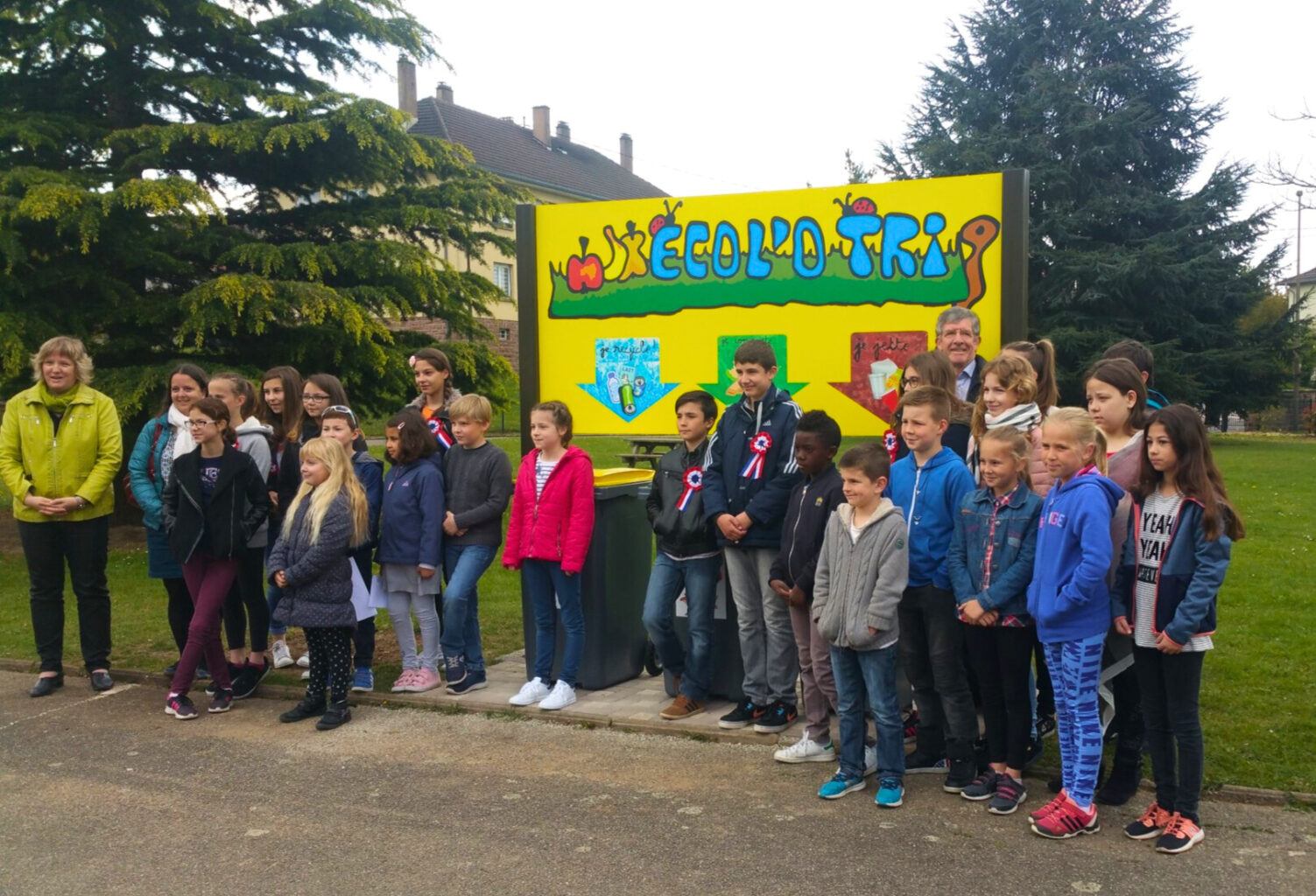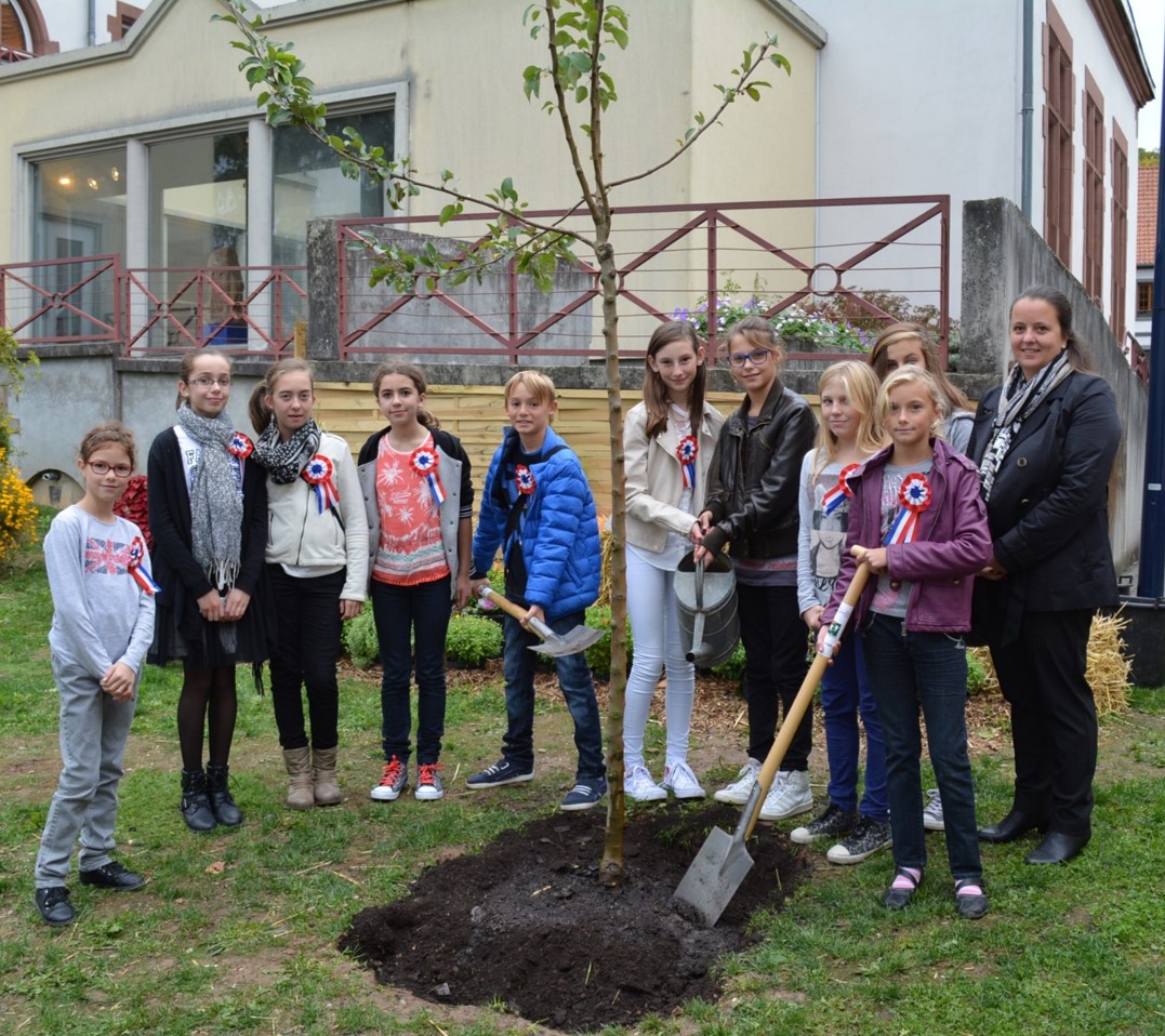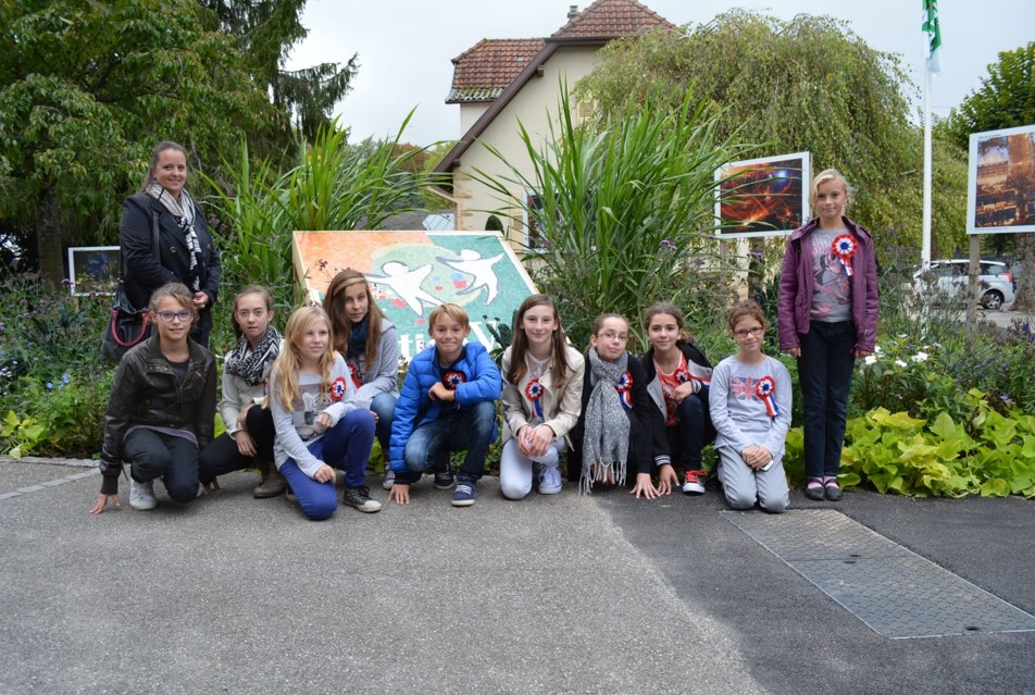 2ème rang : Abel Griesmar Laprun, Anna Schaufelberger, Yohann Laachi, Margaux Buisson Devisse et Vianney Buisson Devisse, Anne Guillier (maire)